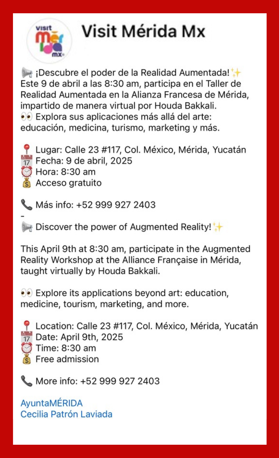Houda Bakkali’s lectures and workshops showcase how art, technology, and communication merge to create impactful content with unique creativity for sectors such as culture, healthcare, education, and tourism. MORE.